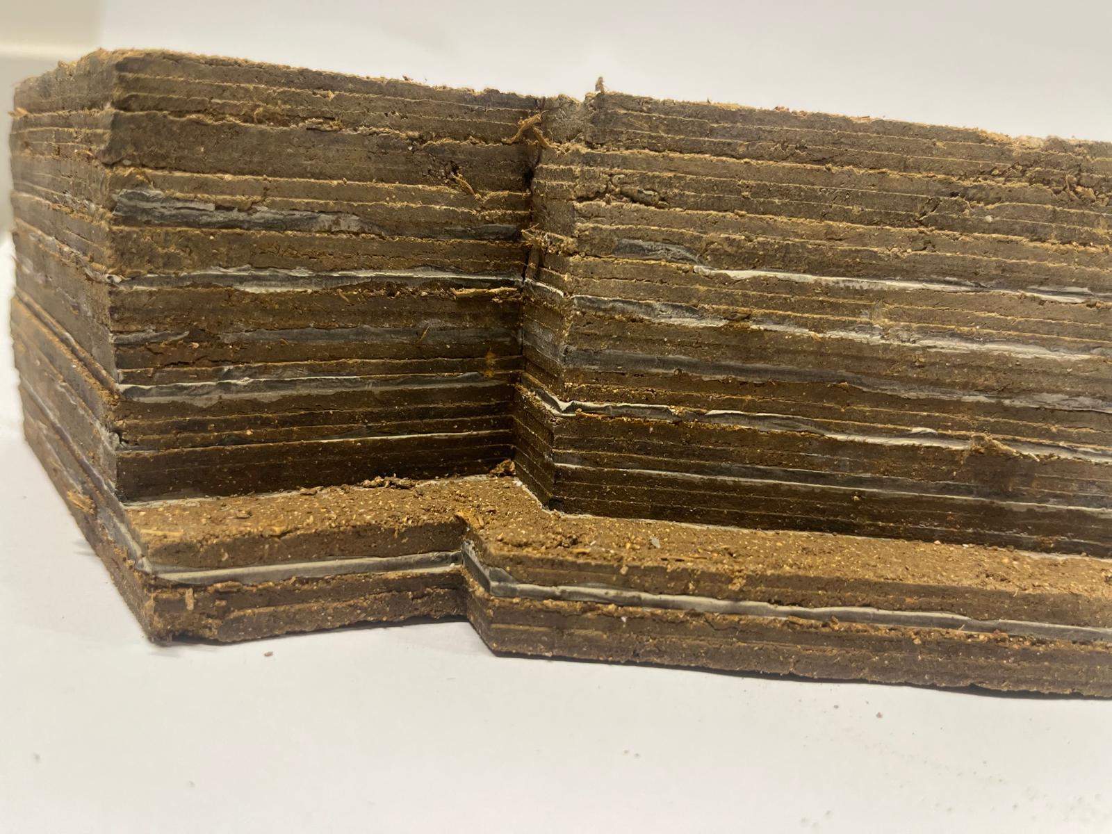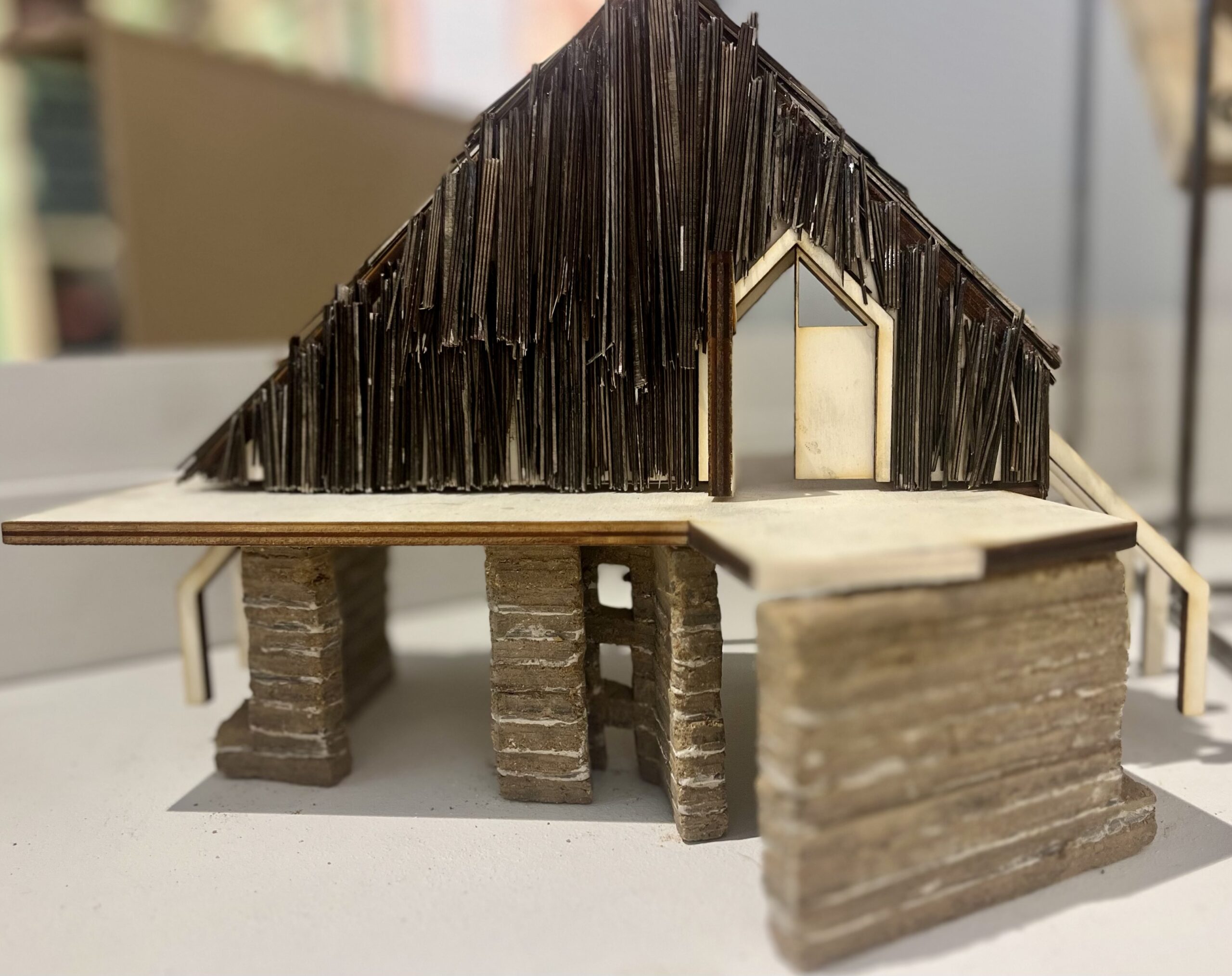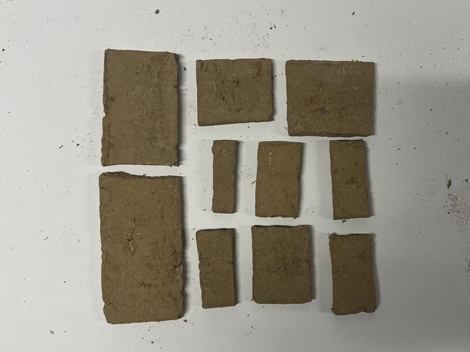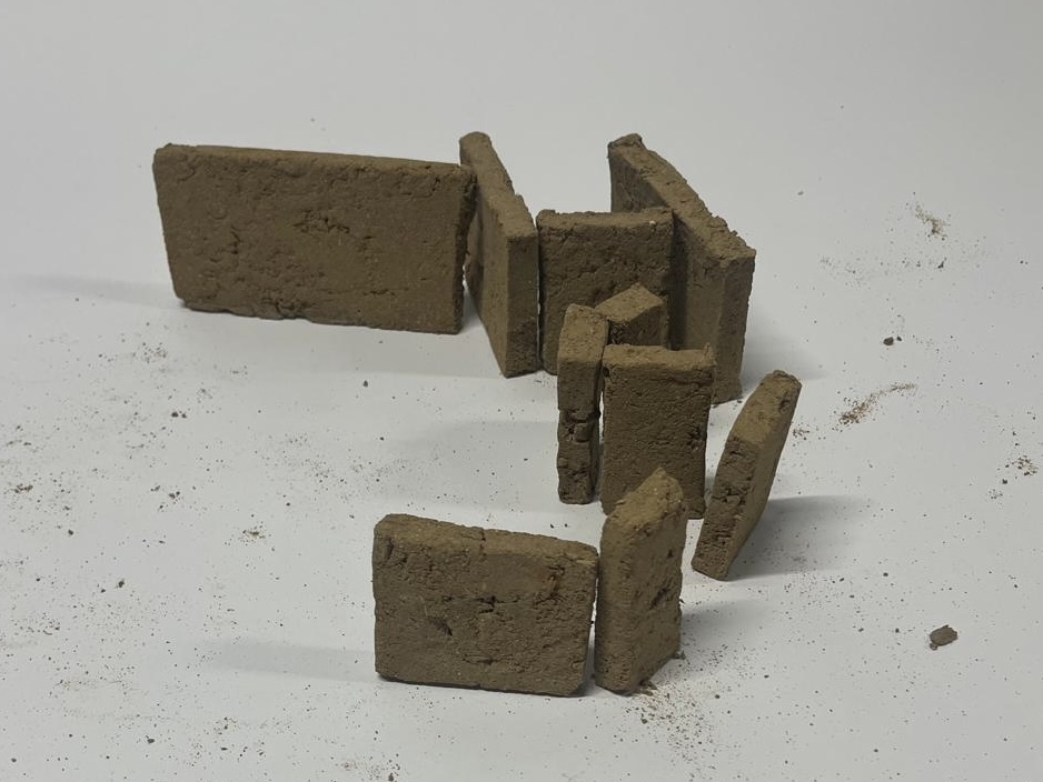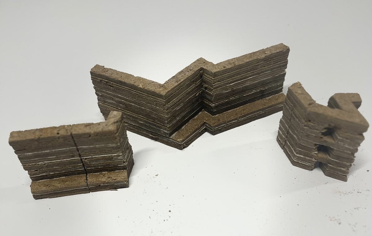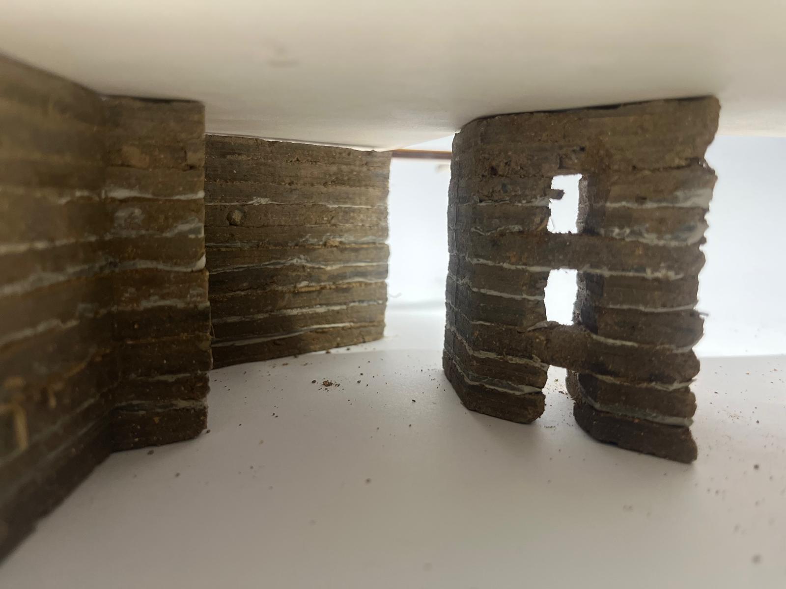 To replicate rammed earth without proper soil, I had to create it myself. I mixed 50% sand for 30% clay and 20% gravel. Since the model is 1:50, I had to make sure none of the gravel were over 6mm as the walls are 1.2cm thick. Then I added enough water so that the mixture is not too watery nor too dry.
